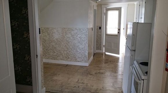 Spacious & Bright open concept 2nd floor 1 Bedroom apartment on dead end street. This apartment has been meticulously maintained! Door off eat in kitchen leads to a 3 season porch and 2nd story deck. Off street parking and large yard. Tenants pay gas heat, Elec hot water, plowing & landscaping. Rent includes water/sewer. No pets please. No smoking.
