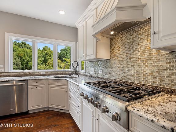 This exceptional estate offers grand proportions, timeless style, and secluded surroundings. Grand reception spaces blend harmoniously with intimate everyday living spaces while surrounded with breathtaking views of the sweeping grounds backed to private woods with a 40'x20' heated inground gunite pool with swim up decks and planters, hot tub with waterfall edge, gazebo with outdoor kitchen area, firepit, and large deck. The graciously scaled home provides timeless style and features throughout all three levels including; white (tuxedo) kitchen with Thermador and Subzero appliances, master bath with stand alone soaker tub, a separate shower room, and multiple linen closets, two home offices, five rooms upstairs each with private baths, upstairs laundry, mudroom with lockers, three car heated garage with epoxy floor, and tons of storage. The perfect oasis to entertain guests or relax and unwind. Welcome Home!