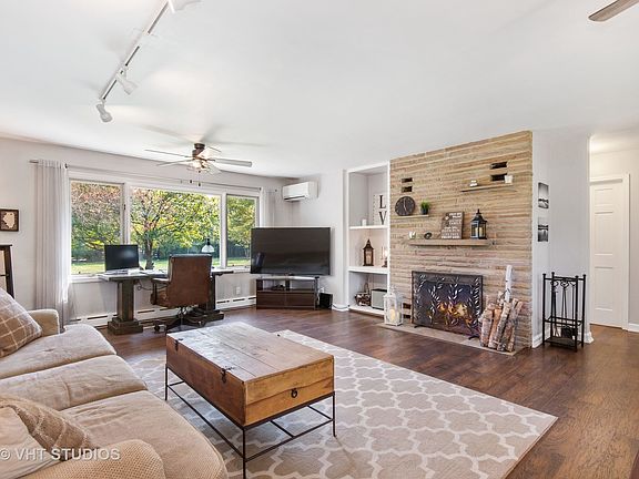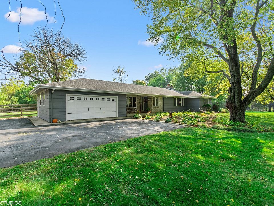 From the minute you walk up to this inviting covered porch, you are gonna love the feel of this cedar and brick ranch home. This home is situated on 2.16 acres with a fully fenced back yard and many mature trees along with over 20 more that have been planted by the current owner. Relaxing views from the huge living room with newly lined stone fireplace and built-in shelving. Enjoy more of these serene views from the updated kitchen with lots of counter space, eat-in space and sitting room which has vaulted beamed ceilings. The entire 1st floor has elegant manufactured hardwood, white woodwork, fresh paint, updated lighting, hot water baseboard heat and 3 ductless mini split spacepaks. The exterior was recently painted to include the addition of gutter guards, generator hook-up and heated garage. Extra perks include award winning St. Charles Schools, no covenants or restrictions plus horses are allowed and you are just minutes from the Randall Road shopping district!