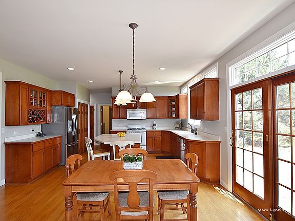 You will love this original owner custom Dave Peterson built home! Extensive mill work, moldings, wide cased openings, transom windows, updated fixtures, and more!! Kitchen with beautiful maple cabinets, large Corian counter island -- dinette opens to expansive brick paved patio & beautifully landscaped deep private tree lined yard! Master bedroom suite with 10 foot ceiling, sitting room, luxurious whirlpool bath with vaulted ceiling, & a 12 x12 walk-in closet that opens to a floored attic... Spacious bedrooms all with 9 foot ceilings... Huge family room with wall of windows & a floor to ceiling rounded hearth fireplace... Den/5th bedroom with adjacent full bath... Dining room with tray ceiling... Deep pour basement with bath rough-in and 3 1/2 car garage with convenient basement access... Great location close to restaurants & shopping... All & more in a wonderful family friendly neighborhood!!