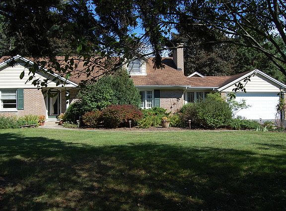 In red hot,highly desirable Green Acres with side driveway access on South Ln 1st floor master suite Cape Cod w vaulted,skylit family room affords sweeping vistas of wooded acre lot.Priced at almost land value together with the ultra rare option to tear down & orient to a South Lane exposure gives this lot extra value.Fireplace warmed family room flows into dining nook,eating area space,island breakfast bar stainless steel kitchen.Formal living room through glass french doors offers fireplace for more intimate gatherings.2nd full bath off kitchen.Upstairs find 2 dormered bedrooms,1 pine paneled for a north woods feel,a study/reading room,& a shared full bath.Carpeted rec room with fireplace,exercise area & through glass french doors an office with built in desk system.Step out of the eating area or family room onto concrete patio for nice weather entertaining.Enter the basement work room direct from the back yard.Cohesive,active homeowner''s association maintains country feel in town!