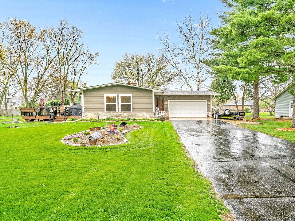 Meticulously maintained, move-in ready 3 bedroom , 2 bath home on a prime 1/2 acre lot in highly sought-after Big Rock! This homes features, hardwood floors, vaulted ceilings in the open-concept living room / dining room / kitchen area, two fireplaces, and a full basement that is partially finished with a family room. The kitchen boasts all stainless steel appliances, hickory cabinets, a breakfast bar and ceramic tile. The hardwood floors flow through the living room, dining room, and down the hall into all 3 bedrooms. Outside is great for entertaining with a large, two-level composite deck that wraps around the heated swimming pool and complete with outdoor lighting. In the evenings, you'll enjoy sitting around the fire pit in the rear of the property.