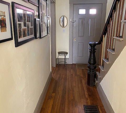 Rare deleaded, five bedroom, townhouse style apartment available June 1st. This unit features kitchen ,dining room, living room and one bedroom on main level. The second level offers two more bedrooms and full bath while the third level has two additional bedrooms. Hardwood floors, laundry in basement as well as storage. Landlord pays water. Tenant pays heat and electric. No smoking, cats allowed. Off street parking, First, last and 1/2 month broker fee due at signing of lease.