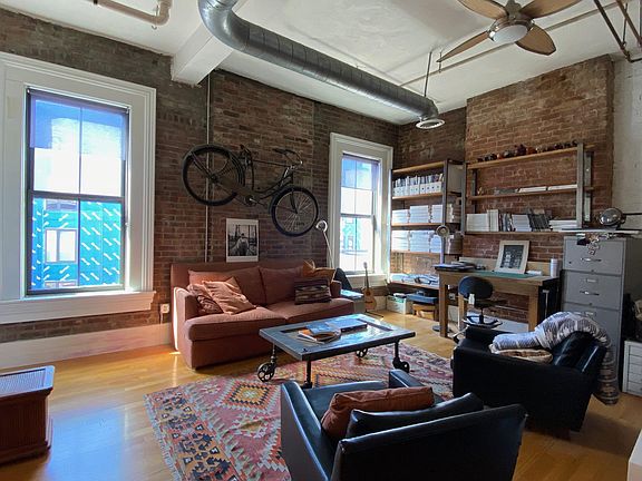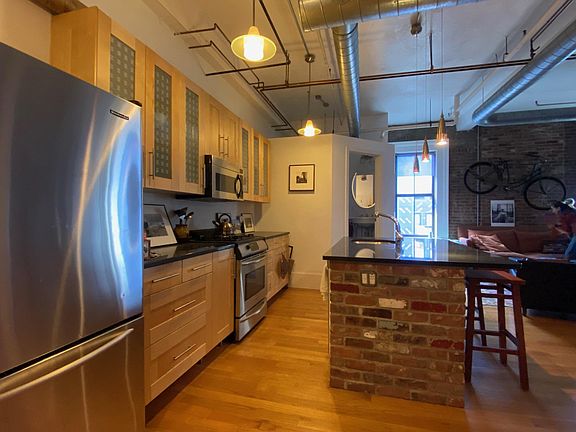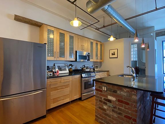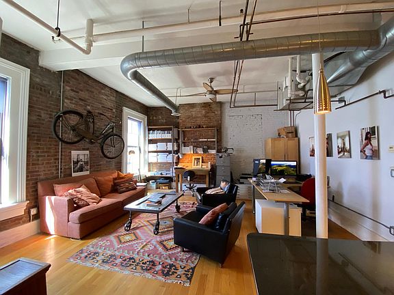 Rare LIVE/WORK Studio Loft in elevator building located in burgeoning Nubian Sq is central to Colleges, Universities, Hospitals and Research Museums alike. This condominium unit is JP/South End/Fenway/Symphony area adjacent with beaches & parks nearby. You'll appreciate the renovations to this authentic loft space with sought after amenities like a/c, bike rack & bonus storage! Oversized windows and soaring ceiling height let the sun-shine-in enhancing the warm yet rustic characteristics of hardwood flooring and exposed brick. Efficiency is apparent throughout the open floor-plan which includes a soaking tub/shower and separate water closet divided by a wall of glass bricks! The fully equipped kitchen features abundant cabinetry storage & stainless-steel appliances; dish/disp, gas cooking, full size fridge and granite counter island station. Enjoy the expansive roof deck with panoramic cityscape views of Boston along with the convenience of on-site laundry. Tropical Foods Supermarket & Public Transportation are at your doorstep! This urban chic industrial loft venue offers both a residential and/or office occupancy to suit all of your urban needs in one space! 12+ Mos. Qualified Tenant. Three months total cost for move-in which includes Fee, First & Security. Landlord will split building move-in/move-out fee. Tenant responsible for utility costs. Armoire, couch & desk can remain or be removed, fyi