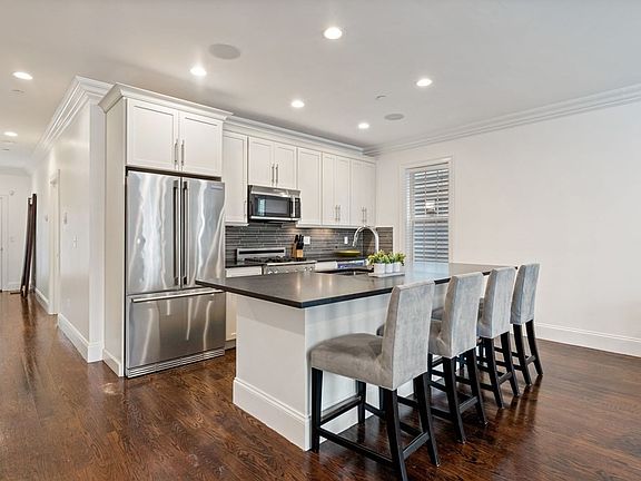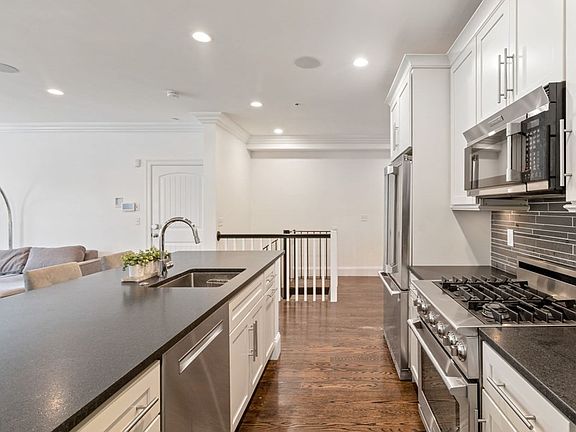 This sophisticated 3 bed/2.5 bath South Boston duplex boats 1,739 sq. ft. of living space on 2 floors. The open floor plan features a gourmet kitchen with Bertazzoni gas range, Electrolux appliances, black granite counters, wine cooler and expansive island with seating for 4+. The kitchen flows into the bright and sunny living/dining room with beautiful gas fireplace, high ceilings and beautiful carpentry. The king-size primary suite has a large walk-in closet and a beautiful marble bath with large shower. There is an additional guest bath and a private deck on this level. You will find the remaining 2 bedrooms and a full bath are located on the lower level. Both of these bedrooms can accommodate king beds and boast 10 foot ceilings, abundant walk-in closets as well as the in-unit washer/dryer. There is an additional deeded storage unit in the building as well as a single deeded parking spot. The property has just been freshly painted from top to bottom.