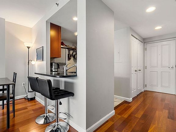 Perched on the 15th floor of the Regatta Riverview in East Cambridge, this one-bedroom oasis spans 663 SF of thoughtful living space. The open layout is adorned with warm hardwood floors and a wall of glass doors that lead to a private balcony, with views of the Zakim and beyond. The kitchen boasts stainless steel appliances, granite counters, and breakfast bar, perfect for entertaining. The bedroom is generously sized with ample closet space and large windows. In-unit laundry and one valet parking space complete the home. The Regatta Riverview offers amenities tailored to enhance your lifestyle, including a 24/7 concierge service, indoor fitness center with 75' lap pool and jacuzzi, theater room, club room with pool table, and more. Situated on the banks of the Charles, residents benefit from proximity to North Point Park, Cambridge Crossing, nearby tennis/basketball courts, as well as a vibrant array of cafes/breweries, and easy access to local highways and public transportation.