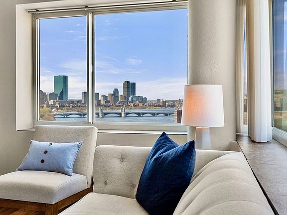 Luxury living at the Regatta! Welcome home to a spectacular 2 bed/2 bath with elevated corner placement, southwest exposure, and breathtaking views from all angles. This meticulous unit features an idyllic floorplan with open and inviting living space. Granite kitchen offers floor-to-ceiling cabinetry, built-in breakfast bar, SS appliances, and adjacent formal dining. Master suite is out of a magazine - providing space for a king, views, custom closets, and designer bath with frameless glass shower. Generous guest bedroom with dedicated full bath. Unimpeded and magnificent views over Cambridge, down the Charles, and to the Back Bay Skyline. You will enjoy daily sunsets and 4th of July fireworks from the comfort of your own home! Laundry in unit. Central AC. Electric blinds. On-site professional gym. Lap pool and spa. Theater room. 24/7 concierge. Valet parking. Just steps to the T, restaurants, and shopping. A truly rare opportunity to own a flawless unit, in location to match.