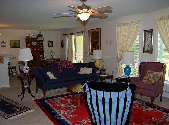This first floor two bedroom, two bath garden style condominium features the best design for easy one level living. Only five years old, in like-new condition, this home has many upgrades. The bright open floor plan includes a well appointed kitchen, dining area with glass doors to the covered rear deck. The master bedroom has its own bathroom with a large shower. An oversized one-car garage has a door directly into this home with no steps! State-of-the-art systems include a most efficient hot water heating system and this home is fully sprinklered for safety