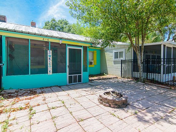All Reasonable Offers Considered. Super cute cottage style home close to fishing and other water activities! 2 bedrooms, 1 bath, concrete block construction with metal roof and covered screened in front porch that leads out to a fenced in patio with pavers for entertaining space. Luxury vinyl flooring throughout the freshly painted living area, renovated kitchen, and both bedrooms. Bathroom has tile flooring and walk in shower with tile details. Back yard has a privacy fence, pavers, and tool shed for extra storage. Originally built in the 1940s as housing for WWII officers by the Army Corps of Engineers, these low-maintenance units have been converted for weekend getaways, permanent residences, and vacation rentals. Residents enjoy the community room, Chillas Hall, for social gatherings. Lanark Village offers amenities such as a small golf course, proximity to the bay with a public boat launch nearby, and a fenced area for boats/RVs. Local community golf course details: 9-hole golf course, a new disc golf course is in progress, a shuffleboard court now, and soon to have pickleball. Call today to schedule your private tour.