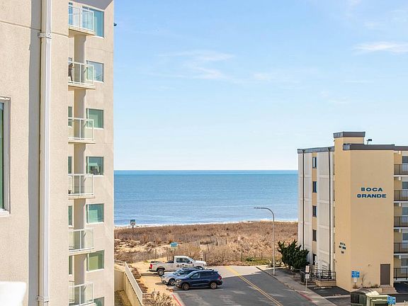 The wide open space Meridian floor plan unit you've been waiting for! Featuring 3 oversized bedrooms, all en-suite! This 4th floor southern facing unit lets in lots of natural light and the oversized balcony with ocean views allows you to watch the waves! The deluxe kitchen cabinets go to the ceiling, pantry closet right off kitchen, custom tile backsplash and the breakfast bar offers plenty of additional dining space. Primary bedroom has slider access to the balcony, two closets, and the primary bath is luxurious-- large double vanity, soaking tub, and separate oversized tile shower. The spacious bedroom 2 and 3 are at the rear of the condo and each have their own bathroom. Good-sized laundry room. Just outside the unit is a sizable, private lockable beach storage closet. Meridian amenities include off street parking, heated outdoor pool with large sun deck facing west, fitness center, an owners social room, and a private beach access boardwalk with gate and beach shower. Located in mid-town Ocean City, just off the Rt. 90 bridge and close to everything OC has to offer! Unit sold fully furnished!