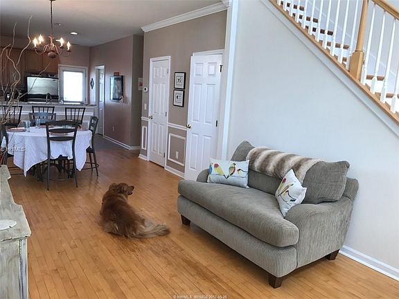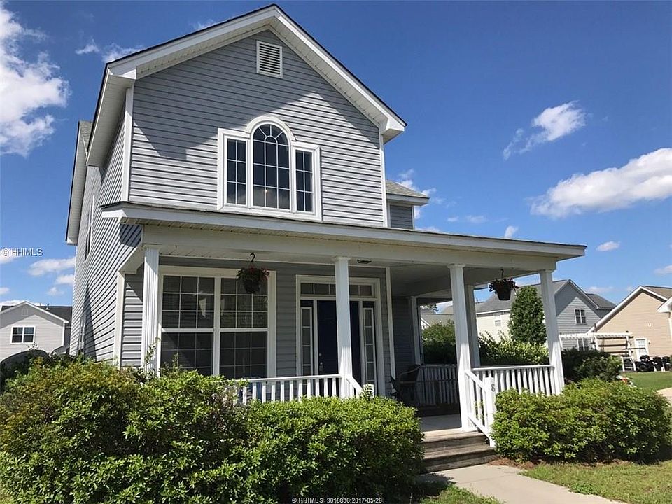 This four bedroom, two and a half bath two story home is move in ready!! Fantastic curb appeal with a front porch and situated on a corner homesite in Bluffton Park. Open floor plan. Kitchen offers granite counter tops and a bar seating area. Master suite on the first floor with French doors leading to the porch. Master suite bathroom offers a soaking tub and large walk in closet. The remaining bedrooms are located on the second floor along with the loft that overlooks the family room.
