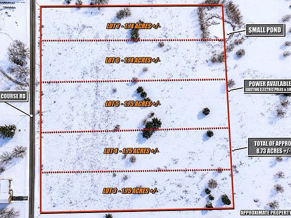 This combined offering includes approximately 8.73 acres across five adjoining parcels in the Golf Course Estates area just outside Brodhead, WI. With direct paved road frontage on Golf Course Road and power available at the street, this property provides flexibility for a custom home, estate-sized build, or multi-lot development opportunity. The land offers open, scenic surroundings with a small pond located toward the rear of one parcel, supporting wildlife and adding natural interest. Buyers have the option to utilize the full acreage together or consider future separation of lots. Convenient access to Highway 11 places downtown Brodhead, dining, shopping, and services just minutes away. Whether you?re searching for Brodhead land for sale, Green County acreage, or an investment property