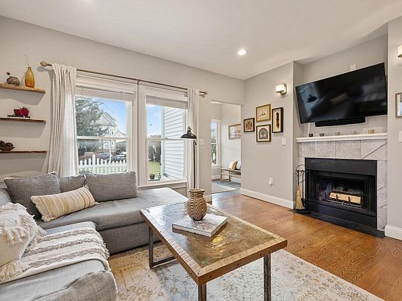 Converted to a townhome in 1990, this Carriage House was completely renovated in 2021. Chef's kitchen features stainless steel appliances, Bertazonni 6 burner gas stove, professional vent hood, quartz island and an abundance of counter space. Open reclaimed wood shelving and subway backsplash adds a modern chic look. Woodburning fireplace is the focal point of the open concept living/dining area. Mudroom and full bath complete the first floor. Second floor has 2 bedrooms with generous closets, a state of the art bath with a tub/shower as well as a walk-in shower and laundry. Expansive lower level has a media room, office space and a large storage area. A Murphy bed makes this space multi-functional for guests. Unit has a private fenced in courtyard and two large common lawn areas on each side of the main house; perfect for a city dog! 2 deeded off street parking spots. Close to Carson Beach, equidistant to JFK and Andrew Sq T-stations, and around the corner from Dorchester Brewing!