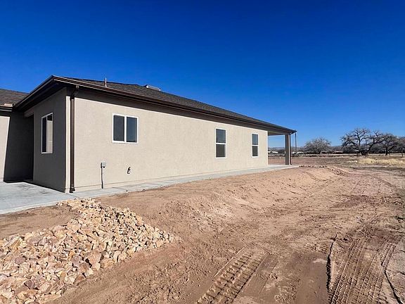 New Construction with a builder who values quality. This home is a close commute to Albuquerque, no detail overlooked. The bright, open floor plan has vaulted ceilings in living area that give off a great feel with lots of natural light. All other rooms have 9' ceilings enhancing the feel of size and openness, Shaker interior doors. Both baths have glass shower enclosures. Primary bath has a oversized walk in shower. Carpet in bedrooms, Luxury vinyl plank in living room, kitchen, and baths. Upgraded cabinets; with lazy Susan, dovetail joints, soft close doors, granite counters, synthetic stucco, rain gutters, garage door opener. Garage is insulated, sheet rocked, textured and painted. This property has room for your animals, your atvs, garden space and has great views of the mountains.