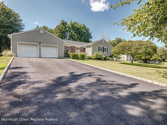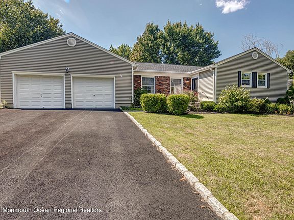 Large updated Ocean Twp Wayside Ranch with 3 bedrooms, 2 full baths, 2 car attached garage and full basement. Easy to maintain, open and airy floor plan, neutral colors. Chair rail, wainscotting and recessed lighting add nice touches. Big family room with French Doors opening to a tranquil backyard with new Trex 12x23 deck (with retractable awning) and paver patio. Updated kitchen with Corian countertops and tile backsplash. Master bedroom has attached updated full bath and walk in closet. Large lot with in-ground sprinkler system. New driveway. 3 yr old Timberline roof. Gutter guards. Laundry Room. Close to beaches, shopping, major routes and all the Jersey Shore has to offer.