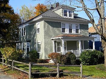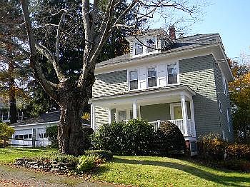 Charming New Englander near Bates College offers lots of room, charm & character with gleaming wood floors, beautiful woodwork, fireplace, built-ins, formal living & dining, sunroom, 5 bedrooms, fenced yard, lovely covered front porch and 2-car garage.