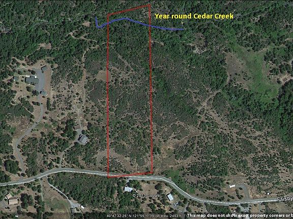 Eight acres with panoramic views and year round Cedar Creek. See Mount Shasta and all the surrounding mountains. More open by the road and more privacy with thicker brush as you get closer to the creek.