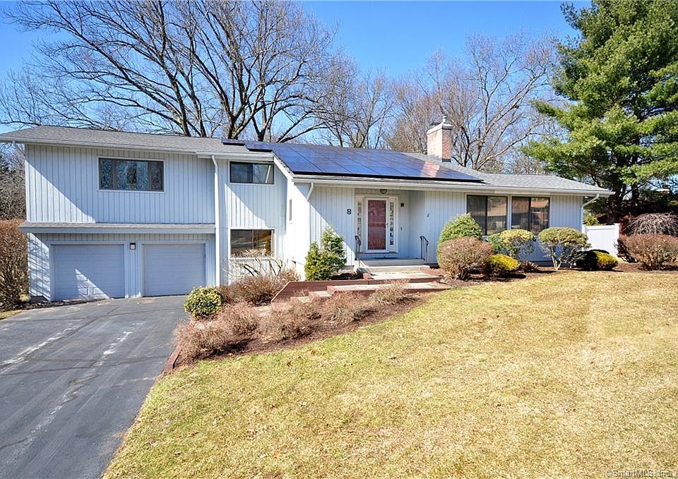 Breathtaking curb appeal welcomes you to this magnificent four bedroom, sun filled, split level Contemporary. This pristine home, nestled on a thoughtfully landscaped .68 acre, level lot, is ideally located on a cul-de-sac. Greet your guests in the open foyer beneath a vaulted ceiling which opens to an expansive living room boasting a vaulted ceiling and a slider which leads to the multi-level deck. A high-end kitchen offers an abundance of cabinetry and Corian countertops, stainless steel appliances including a Viking gas cooktop and hood as well as tile flooring. Entertain in style in the dining room before proceeding to the sprawling family room with a brick fireplace and built-in bookshelves. There is an additional bedroom with a completely remodeled half bath and a den with an atrium door leading out to the custom deck. On the upper level there are three bedrooms and a full bath. You will be awed by the spectacular 785 sq. ft. master bedroom suite which features a sitting room, extensive built-ins, an amazing walk-in closet, recessed lighting, pocket doors and a gorgeous updated master bath with a custom tiled shower. There is tremendous value found in the newer architectural roof shingles, newer boiler, hot water heater, newer garage doors and an irrigation system. Imagine the luxury of having a finished lower level perfect for a recreation room, a gym or an office. Minutes away is Northwest Park, Windsor's premiere destination for outdoor recreation and fun. Perfect
