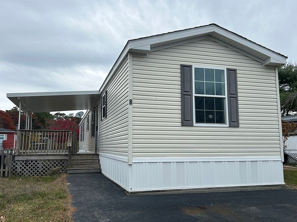 Welcome home to this 2015 Commodore Astro 2 bedroom 2 bath mobile home. This unit is in move in condition with fresh paint and lighting. All appliances included. Open floorplan with eat in kitchen, rear primary bedroom with a walk-in closet and a primary bathroom with double sinks. Plenty of cupboards throughout. Secondary bedroom to the front allowing for added privacy. Large new deck with new awning for enjoying those summer nights after a long day at Onset Beach, Cape Cod Canal, Water Wizz or the many other area attractions. Centrally located to both shopping and medical facilities RT 495, Rt 58, RT 28 RT 3. Wooded walking trail at the end of Mogan's Way. Small side yard is fenced. Pets allowed with park approval. 55+ community, park approval required.