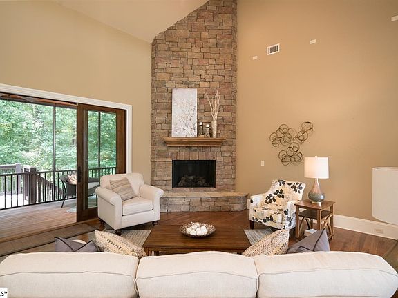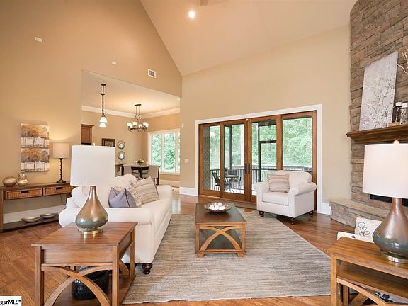 Superior craftsmanship and the finest of finishes abound in this locally built custom located in the gated Simpsonville community of Allegheny. Featuring a luxurious lower level on a private wooded lot, 8 Allegheny Run boasts excellent quality. There's simply no detail overlooked. The professionally manicured grounds draw your eye to the arched mahogany front door flanked by cedar columns not to mention the home's custom shutters. Upon entry, you'll be delighted by the slate foyer with inlay detailing, thick custom columns and moldings as well as authentic red oak hardwoods. All of the home's doors are stained wood and those on the main level are 8' in height to gracefully balance the 10' and higher ceilings. The elegant dining room off of the foyer showcases a breathtaking coffered ceiling complete with a copper inlay. And the home office/study features stained French doors and a picturesque window to the front grounds. The Great Room has a floor to ceiling stacked stone gas fireplace with Marvin brand door sliders that bring the outdoors in! It's a window to your screened porch with an outdoor gas fireplace and rear grounds that is more like a park than a backyard! The kitchen features furniture grade cabinetry, gas cooktop and a charming breakfast area. The master suite with hardwood floors has a spa-like bathroom complete with two sinks, a soaking tub and a fully tiled shower. And, the master closet is quite gracious in size with solid wood shelving system. There are two additional bedrooms on the main level that share a Jack and Jill style bathroom. The laundry room is also located on the main level with a sink and tons of storage space. The lower level is finished at the same quality & detail as the main level. The open wrought iron staircase leads you down to an awesome area! The lower level comes with a large Great Room or Recreation zone (note pool table!) with the home's third fireplace and its own bar/kitchenette with granite tops, a sink,under-mount frig/wine chiller and space for a microwave. There are two additional bedrooms, a full hall bathroom PLUS a media room/home theatre, and a large exercise room or additional recreational area. And if storage is your focus, you won't be disappointed. The home offers a 3-car garage PLUS three spacious walk-in storage areas in the lower level behind barn door style sliding doors and a huge walk-in closet with shelving, And don't miss the fully enclosed screen porch with flagstone pavers on the lower level too. The home also showcases central vac, security system, and more! Allegheny offers a robust amenity package including a gated entrance, a resort-style pool, pedestrian bridge, Summer Kitchen, lighting and sidewalks. Just minutes from Five Forks Simpsonville, downtown Simpsonville and I-385 exchange.