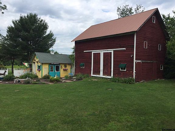 Move right in to this 1868 historic farmhouse, situated on 4 acres in the heart of Voorheesville. Meticulously maintained in a park- like setting complete with a post and beam barn with water and electric ( 2 horses allowed) , potting shed with cable and electric, perennial gardens and the rear of the property borders the Vly creek. Multi-zone heating system recently installed. Home features wood floors, Maple kitchen cabinets, ss appliances, and much more.With in-law apt. See virtual tour for video