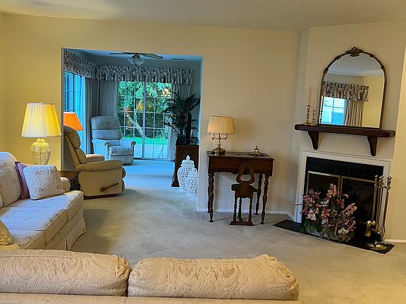 Best in Mt. Laurel! Ranch style home in Holiday Village, an active 55+ community with many amenities which include access to the clubhouse, pool, gym and social activities. Home has 2 bedrooms 2 full baths. Large Primary bedroom has a walk in closet with solid shelving. Eat-in kitchen with new stainless appliances, pantry and lots of cabinet space. Separate dining room and spacious living room with fireplace. Laundry room with washer and dryer. Enjoy the beautiful, peaceful backyard view from the sunroom or on the large patio. Furnished or unfurnished for a quick transition. Property has a new furnace, new roof and freshly painted interior. 1 car garage with access stairs to standing, floored attic space for storage. Pet friendly! Multiple year lease available. Renter to pay own utilities. Grass cutting included. No smoking.