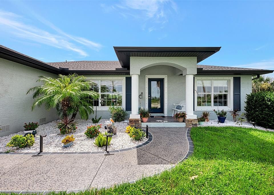 Discover your dream home in the serene community of Rotonda Sands—perfectly situated on a peaceful cul-de-sac and offering unmatched privacy with an additional adjacent vacant lot included in the sale. Step inside to a bright, open-concept living space with tile flooring throughout, creating a clean, airy, and inviting atmosphere. The smart split floor plan features 3 bedrooms and 2 bathrooms, providing comfort and privacy for all. The stylish, functional kitchen is equipped with stainless steel appliances, granite countertops, a pantry closet, and a convenient breakfast bar, flowing seamlessly into the dining area—ideal for everyday living and effortless entertaining. The spacious primary bedroom includes a large walk-in closet and direct access to the screened lanai—an upgrade also shared by one guest bedroom. The primary bathroom is beautifully appointed with a granite double vanity, generous storage, a linen closet, and an expansive walk-in shower. This home is meticulously maintained with an updated roof (2022), insulated, climate-controlled garage, whole-house water softener + reverse osmosis system to sink and refrigerator, indoor laundry room with utility sink and upper cabinets. Step outside to your own private oasis. Enjoy morning swims in the sparkling pool or relax in the evenings on the screened lanai, taking in the tranquil setting and stunning sunsets. Rotonda Sands offers easy access to gorgeous beaches, top-rated golf courses, local dining, and the scenic Cape Haze Pioneer Trail—delivering endless opportunities for outdoor recreation. Don’t miss the chance to make this exceptional property yours. Schedule your private showing today!