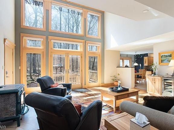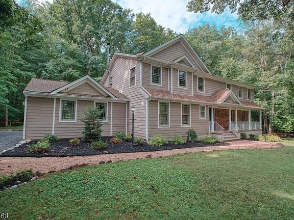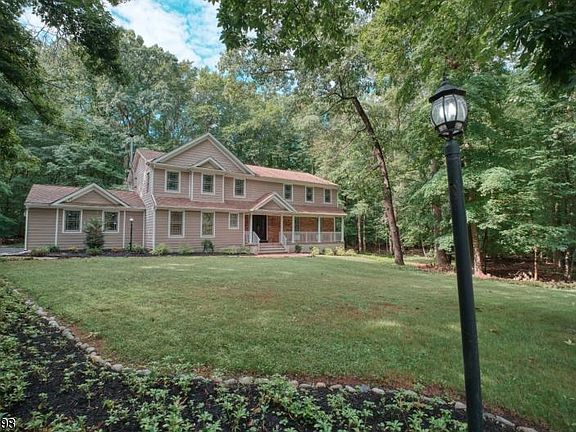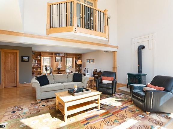 Custom Built Colonial with Master Bedroom Balcony overlooking the Great Room featuring: 20 foot ceilings, Floor-to-ceiling windows facing private wooded lot, wood burning stove & built-in dry bar. INTERIOR Features: Master walk-in closet plus additional custom gentleman's closet. "Chef's" eat-in kitchen w kitchen island & Granite countertops, Maple cabinets, and Viking Stove & Microwave. Built-in bookcases in the library / office open to the Great Room. Oak trim work throughout. First floor laundry, Central Air & Central Vacuum. EXTERIOR Features: Trex Deck, AZEK exterior trim (no exterior wood trim), Gutter Guards, Anderson 400 Series Windows throughout w/ true divided light. Whimsical wooden bridge leading to Pavilion, perfect for entertaining year round.