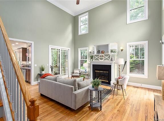 Elegant Craftsman-Tudor home by Samsel Architects at the end of a quiet cul-de-sac in the popular Applewood neighborhood of Haw Creek. Minutes from Downtown Asheville, Whole Foods, the mall and the Blue Ridge Parkway's trails. Spacious master suite boasts a master bath with 2 vanities, soaking tub and separate shower. Relax in the living room with soaring 18' ceilings or enjoy cooking in the gourmet chef's kitchen with granite counters, stainless appliances, gas range, separate wall oven and a kitchen island with a catering sink. Kitchen and living open to a private screened porch with beautiful views into a serene wooded forest. Flat yard with a tree house perfect for play. Everything you need on the main level: master suite, living, dining, 2-car garage, pantry, laundry and office. Upstairs includes a second master bedroom plus 2 spacious additional bedrooms and a loft. Welcoming community with higher-end homes has a gorgeous perennial garden pocket park. See brochure for details.