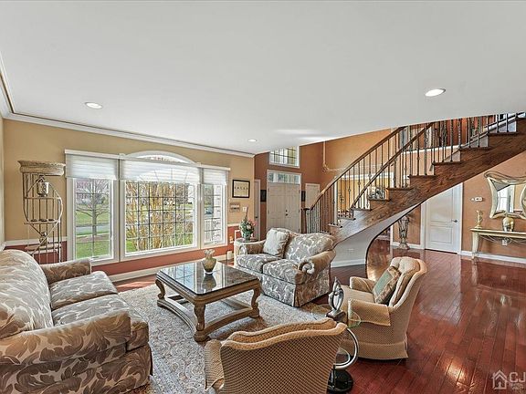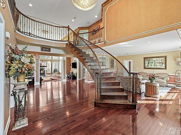Nestled at the end of a serene cul-de-sac, this magnificent estate boasts an opulent presence with its palatial design and grandeur. As you step inside, you're greeted by an expansive open floor plan adorned with cathedral ceilings that soar overhead, creating an atmosphere of unparalleled luxury. A striking floating staircase commands attention, leading the way to the upper levels where palladium windows flood the space with natural light. The heart of this home is its gourmet kitchen, equipped with top-of-the-line appliances and adorned with gleaming wood floors. Custom moldings and paint add a touch of sophistication throughout. A solarium bathes in sunlight, offering a tranquil space to relax and unwind. For extended family or guests, a guest suite on the first floor provides privacy and comfort. The large walkout basement, boasting high ceilings and pre-plumbing for a bathroom, offers endless possibilities for recreation and entertainment. Outside, the lavish backyard beckons with a custom luxury heated pool and jacuzzi, perfect for summer enjoyment. The pool features elegant Tennessee stone, a Jacuzzi, a multi-tiered waterfall, water slide, and kiddy pool while an indoor seated water cave provides a unique retreat. Beautiful landscaping surrounds the property, creating a picturesque setting for outdoor gatherings. Completing this remarkable estate is upgraded lighting adorned with rich chandeliers, elegant Custom closets and gleaming hardwood floors. A 2nd entrance adds convenience and accessibility. A 2nd set of staircases allows for effortless navigation between levels. An oversized shed provides additional storage space. A beautiful Pavers Patio, a sprinkler system are just some of the many additional highlights. With its blend of elegance, comfort, and functionality, this home embodies the epitome of luxury living. Great lower taxes ( sellers had them reassessed) and great location with easy access to the Turnpike exits 8A or 9, route 9 and route 18.
