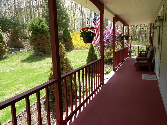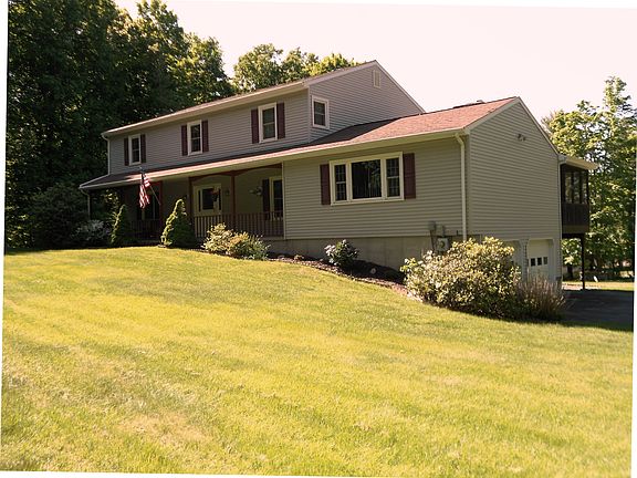 A beautiful setting and move in condition make this updated Colonial simply irresistible. Recent improvements incl new walkway & front door, fresh paint throughout, new carpet, updated fixtures, and more. Tranquil 1.9 acre property incl: covered front porch, large deck, & screen porch w/skylight. Huge family room w/exposed beams, brick frplc/woodstove. EIK features granite counters, stainless steel appliances, sun filled breakfast nook. Hdwd floors & ceiling fans in most rooms. Spacious bedrms incl MB w/full BA, w/i. Ample closet/storage. Walk out unfin bsmt = potential addt'l living space. Faithfully maintained by orig owner: new septic tank 2014, newer siding, roof, furnace, windows. Quiet neighborhood, yet convenient location.