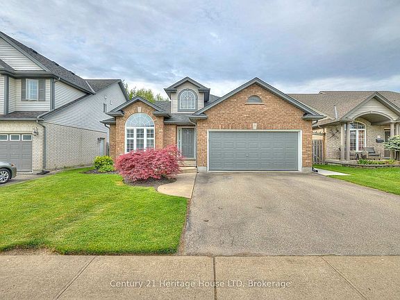 Stunning 3 bedroom, 2 bath backsplit, built by award winning Rinaldi Homes. Located in highly sought after location with quick access to shopping, restaurants, parks, schools and highway access. From the moment you enter the home, you'll love the soaring vaulted ceilings and large windows providing plenty of natural light. The main floor features a well appointed living room with hardwood flooring, an oversized kitchen with plenty of cabinetry, a large island, stainless steel appliances and large open concept dining area. A few steps up leads to your primary suite with 2 full sized closets, 2 additional bedrooms and a 4pc bath with large jetted tub and separate shower. The lower level features a 3pc bath, expansive rec room with large windows overlooking the nicely manicured backyard. The basement provides plenty of extra storage, or finish it off for extra living space. A convenient side door entrance from the main level leads to your large covered concrete patio with pot lights, and fully fenced yard. Updates include: Updated A/C in 2022, updated roof shingles 2017, concrete patio and shed all installed in 2022.