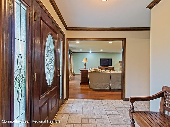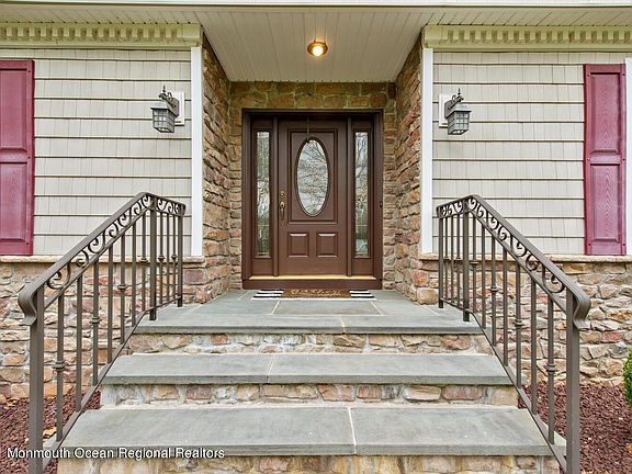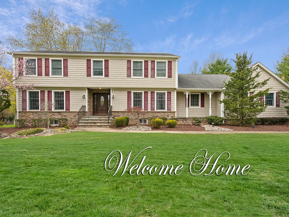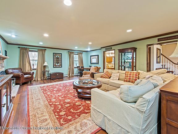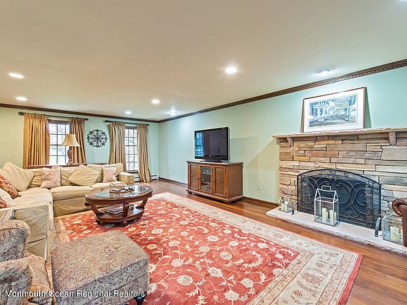 Meticulously Maintained 5 Bedroom, 3 Bathroom, Center Hall Colonial with Full Finished Basement located on 0.95 of an acre Park-like setting in desirable Holmdel Community. First floor features a Great Room with Stone, Gas Fireplace, Recessed Lighting, Wood Flooring. Eat-In Kitchen with Center Island, Dining Room, Bedroom and Full Bathroom ON FIRST FLOOR! Second Floor has 4 Bedrooms, Laundry Room, Hallway Bathroom and Master Suite with Full Bathroom & Walk-In Closet. Attached Oversized, 2 Car Garage, Driveway with Belgian Block Curbing. Backyard has fenced in vinyl lined, In-Ground Pool, Paver Patio, Swing Set and Storage Shed. America's Preferred Home Warranty attached.