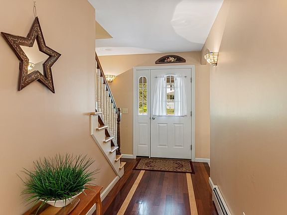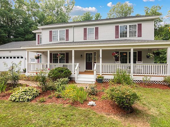 Welcome home to this immaculate custom colonial on a private 2.16 acre lot! The 2,550 sq ft flexible floor plan offers 3-4 bedrooms, 2.5 baths, and mudroom/half bath entry from the oversized 2 car garage. Tasteful & spacious kitchen, breakfast area, formal dining room, family room, and cozy VT living room with gas fireplace round out the first floor. Upstairs are the huge master suite with gas fireplace, full bath & mini split AC, laundry, guest bath, and 2-3 add'l bedrooms/office. Not to be missed is the beautiful custom hardwood flooring throughout. Improvements include a new roof '23, spacious paved driveway & overhead door '21, and on-demand natural gas boiler '19. Fabulous walk-out full basement with daylight windows and walk-up access to the garage is perfect add'l expansion space. Enjoy the landscaped open and wooded lot, amazing freshly painted 8x40 covered farmhouse porch, and the private rear deck with nat gas grill included! Showings begin Fri, 8/2.