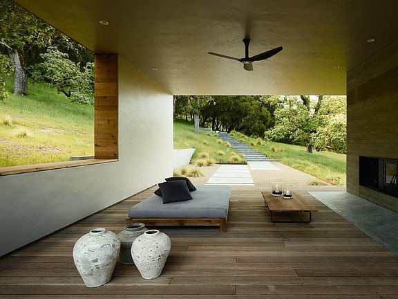 Architect Daniel Piechota created an intimate connection between this 2 story family residence & the hills of Santa Lucia Preserve. Siting the home amidst oaks & organizing the architecture to frame the broad valley views & peeks of The Preserve golf course, allows nature to embellish everyday life. The use of cedar, weathered steel, concrete and floor to ceiling glass connect the building to the surrounding textures from tree canopies to an open meadow. Landscape designer, Bernard Trainors use of soft grasses balanced by a granite stone garden & wide concrete pavers brings the landscape into focus. A stainless steel jacuzzi creates a quiet retreat between the master & guest wings. The outdoor living room & stone garden enjoy gentle breezes of a higher elevation. The main entrance to the home leads guests up a compressed stair sequence unveiling the sunny open courtyard and access to the main residence. Designed as a full-time residence, simplicity and livability were high priorities.
