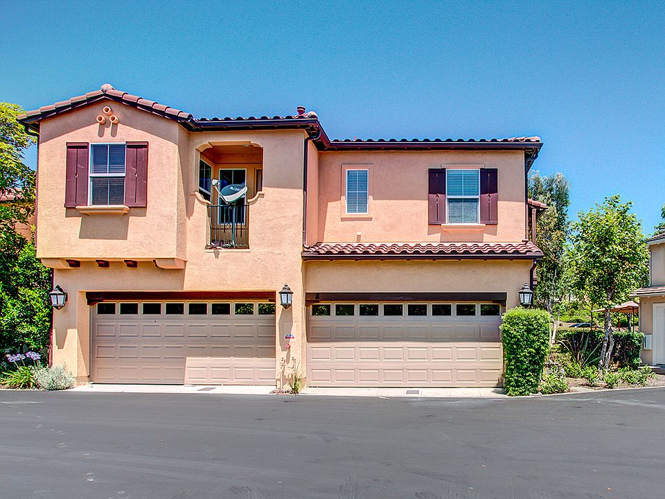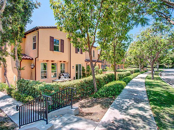 Welcome home to this beautifully upgraded, model perfect, end unit townhome with large patio, located in the Atherton Glen community of Ladera Ranch. Light and open, this largest floor plan compliments designer touches, including crown molding, wood laminate floors, plantation shutters, and designer paint. Large family room with cozy fireplace and custom built-ins, and large dining area for family and friends. Stainless steel appliances, recessed lighting, white cabinetry, glass backsplash, and plenty of storage, make your kitchen ideal. Enjoy entertaining friends, your morning coffee or just reading a book in your private courtyard. The second floor boasts wall to wall plush carpet, and laundry room for your convenience. Two additional guest bedrooms upstairs, one with its own balcony, share one bathroom with dual sinks, and white cabinets. The master suite with high ceilings and natural light, has ample room for large furnishings and the master bathroom doesn't disappoint with dual sinks, custom shower and tub. Attached 2 car garage for parking and the home is situated on a premium lot, surrounded by lush landscaping. Enjoy all that Ladera Ranch has to offer, including swimming pools, biking, trails, award winning schools, and community events.