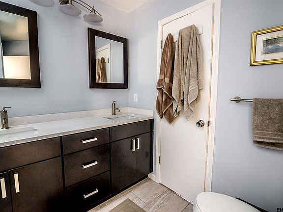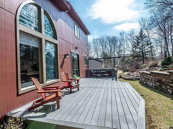 This contemporary home sits on a quiet wooded lot and offers an open concept layout! A balcony within the home overlooks the family room which features plenty of living space and a wood burning fireplace. Finished basement has space for a play area, office, workout area, or a second family room. Enjoy private landscaped backyard from your trex deck. Home is conveniently located near the nature preserve and Niskayuna bike path, as well as walking distance to restaurants and close proximity to highways.