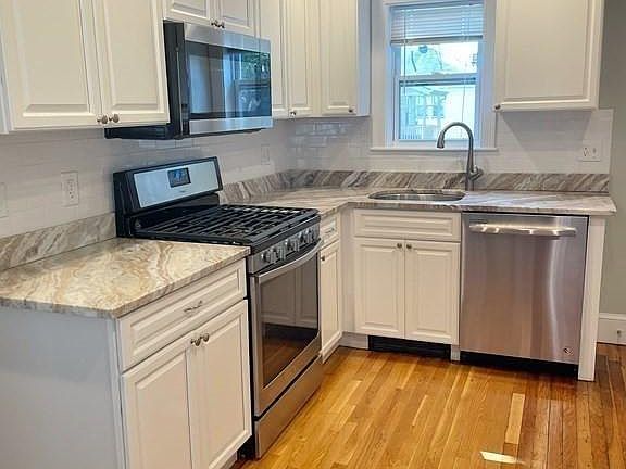 Avauilable 10/1/2022 1st floor apartment with gleaming hardwood floors and freshly painted throughout. Newly renovated kitchen with granite countertops, white cabinetry, and stainless-steel appliances. Large and spacious living room with 2 generously sized closets, 2 bedrooms and updated bathroom. Private back porch off kitchen and gravel patio outdoor space. Washer/dryer and additional storage in the basement, and off street parking for 2 vehicles! Convenient location, minutes to Roslindale Village, shopping and dining, public transportation, and the Arnold Arboretum! Close to Brigham and Women's, Faulkner Hospital and the Longwood Medical area. move in costs are 3 months if accepted. First, Last and Broker fee.