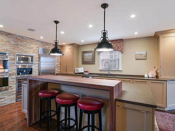 Tucked into a charming, private alcove within the highly desirable community of Teversall in Doylestown Township awaits this customized home with high-end finishes, updated elements and an elevator servicing all floors! The Charles Weiler custom kitchen packs a "wow" and includes a double depth island with Wolf induction 5 burner cooktop and wood bar height eating area, SubZero refrigerator with bucket freezer, SubZero bar refrigerator, Wolf double ovens, built-in Miele coffee station, GE microwave, Asko dishwasher, deep stainless steel sink, Caesarstone quartz countertops, stainless steel appliances, pullout drawers inside cabinets, built-in pantry, and a custom stone accent wall. The dining room is contiguous with the kitchen and offers great space for a table and access to the beautiful outdoor deck. With the open floor plan, the family room is fluid to the kitchen area, which is highly desirable. A custom stone wall feature is also included in the living room, where there is a wood burning fireplace and access to the deck. The library / office / den / study / homework station / playroom / hobby room has two walls of builtin shelving, a dramatic vaulted ceiling, and generous double door closet. The half bathroom nearby also features custom stone elements and a beautiful wood vanity. Upstairs, you will be delighted with the primary en-suite, offering plenty of space for rest, two walk-in closets with custom shelving,, a bathroom with large tile shower including 4 body sprays, long vanity with two sinks and many cabinets, a make-up station and window seat. Also upstairs are two additional bedrooms with closets with custom shelving, a hall bathroom, and a bonus room leading to the laundry room. The finished basement offers multiple entertainment spaces (family room, gym, play spaces, office, bar with sink and mini refrigerator), a full bathroom, and plentiful storage spaces. This community of Teversall is connected to great pedestrian paths, connecting you to Doylestown Borough and its renowned restaurants, boutiques, museums and parks. Simply spectacular!