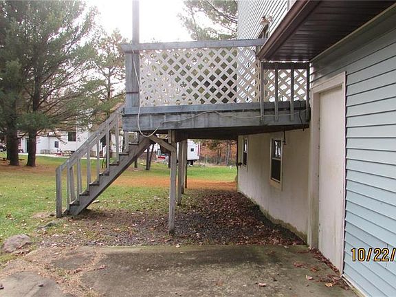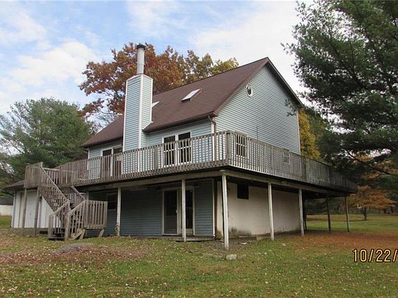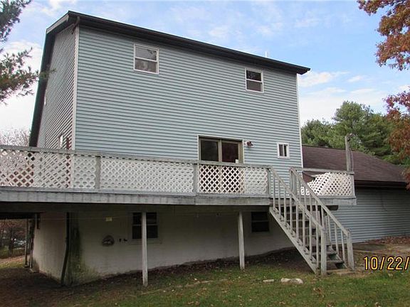 Bright and airy saltbox features inviting kitchen area. Large LR w/fireplace. 3/4 bath on 1st level. 2nd floor offers 2 nice sized bedrooms, full bath with large soaking tub. There is also a loft area that would make the perfect office area. Gut the remaining discolored drywall from the daylight/walkout basement and refinish it for even more living space. Deck wraps around home from the front to the back but is in need of some TLC. 2 car garage with breezeway. Offered in as is condition for only $62,900
