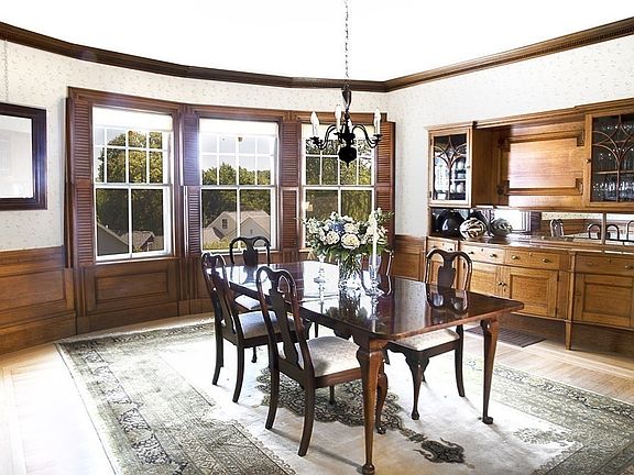 - Din Dscrp: Flooring - Hardwood, Fireplace, Chair Rail, Wainscoting, Window(s) - Bay/Bow/Box, Closet/Cabinets - Custom Built, Closet