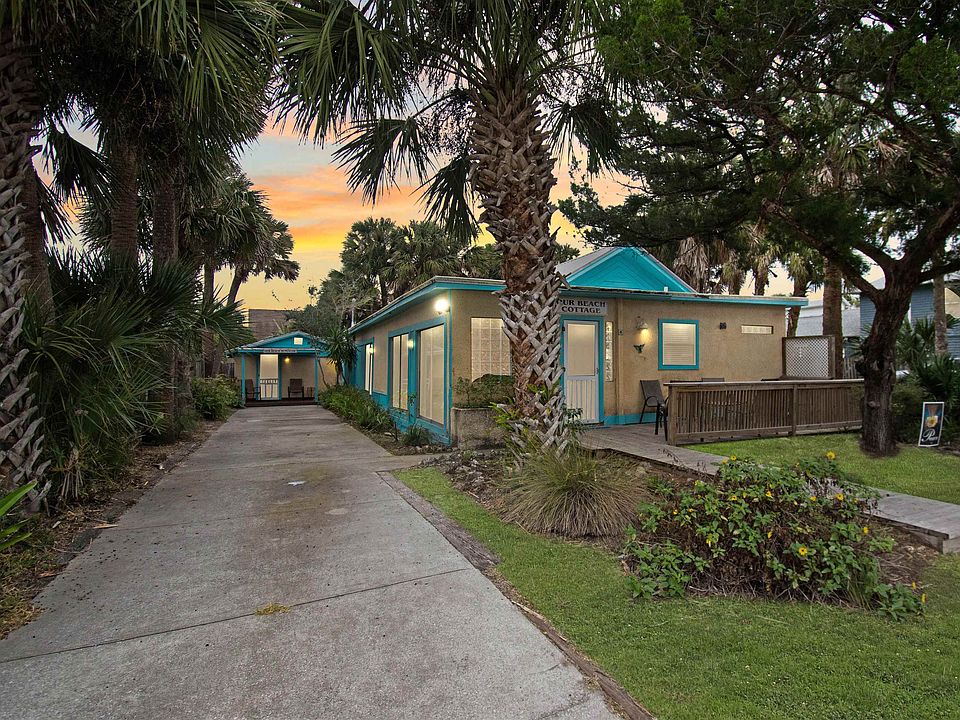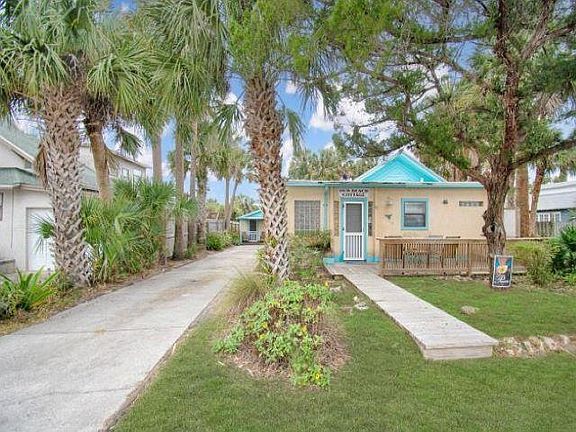 Unique and historic opportunity to own this property that has a beach cottage and separate bungalow 3rd house from beautiful St Augustine Beach. This money maker comes with a transferrable short term rental license! Cottage offers a step saving kitchen with all the conveniences, formal dining, living room with a pull out sofa. The cottage sleeps six with 2 bedrooms, master suite with en-suite bathroom and walk in shower. Guest bedroom with a guest bathroom. Romantic soaking tub off the living room area. Stacking front loader washer & dryer. Pine wood flooring with carpet in bedrooms. The Bungalow offers a galley kitchen, and a combination dining and bedroom, mini split AC/Heat, stacking washer & dryer and full en-suite bathroom. Lots of decks and parking on this oversized 75x100 lot. Outdoor shower, Separate full bathroom for guests coming to and from the beach. Easy landscaping with Florida Native Plants. Continue to make money until you are ready to build your dream home here. Steps to the beach, A1A Beach Blvd, restaurants, shopping and more. Who needs to drive anywhere? This charming combo ready for new owner!