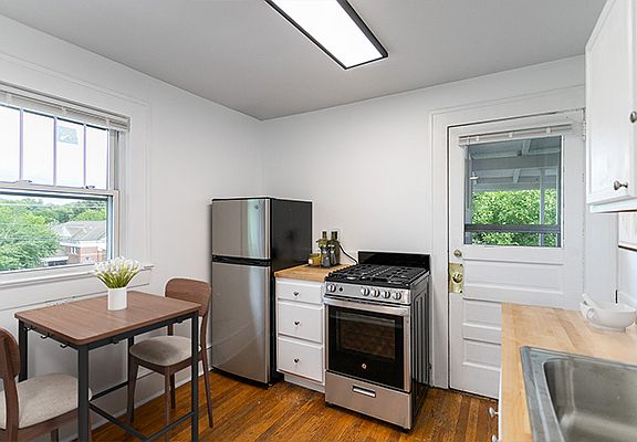 Flexible lease lengths available. Second floor studio apartment just off Charlotte Street in desirable North Asheville. Great amenities right outside your door including Jettie Rae's, Taco Temple, and City Bakery while being just 3/4 mile from the center of downtown. Newly renovated with a brand new mini-split HVAC system, stainless appliances, butcher block counters, and fresh paint. This light-filled studio also has newer windows and hardwood floors. Shared off-street parking, easy on-street parking, and quick access to public transportation. Off-site coin/card operated laundry is available in a neighboring building, under the same management. Tenant responsible for individually metered gas and electric service, water/sewer/trash paid by landlord. Up to 2 pets are welcome with a fee, subject to breed restrictions.