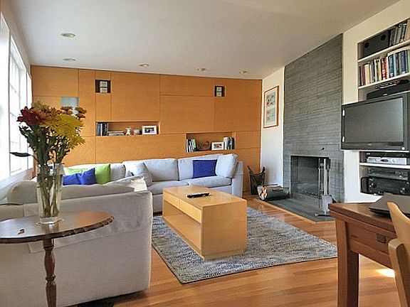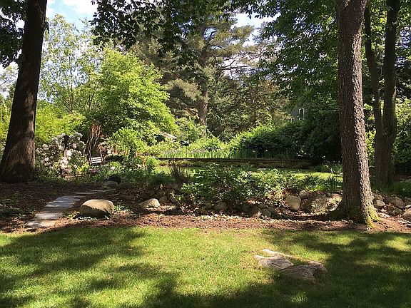 Modern meets traditional in this impeccably maintained architect's own home, set on a beautifully landscaped lot with lawns, perennial shrubs and flowers, and mature oak, beech & cherry trees, watered by an automatic sprinkler system. Oak flooring runs throughout. Features include a living/dining room with a floor to ceiling wall of maple bookcases and an accent wall of warm birds eye maple. The fireplace is finished in an elegant striated stone. The kitchen features solid maple cabinetry, 24 lineal feet of Corian countertop, a Bosch dishwasher, Whirlpool flat glass cooktop, Kitchen Aid built-in oven, and a GE microwave. The kitchen is open to the bright sunroom eating nook that flows to a large outdoor deck. The master includes a walk-in closet, built-in maple dressers, and a modern en suite bath. The basement is fully finished with a laundry room, work room and family room.The family room has new carpeting and built-in maple bookshelves and cabinets. Attic with 500 sf of storage.
