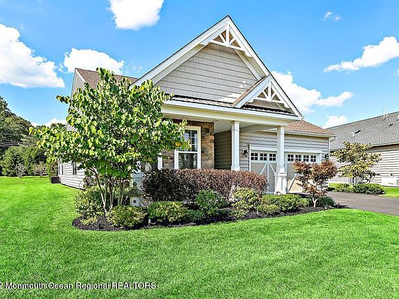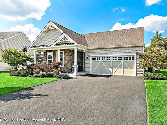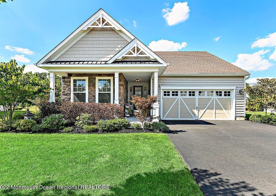 Enjoy resort style living! This beautiful, light filled Martinique model home offers more sq. footage and a larger lot than other similar models. Spacious open floor plan with 9' ceilings is perfect for entertaining! Enjoy cooking in the chef's kitchen with granite counters, large center island, double ovens and large pantry. Great Room features tray ceilings, large windows and engineered hardwood floors. Sliders lead to a gorgeous paver patio with lush landscaping, retractable awning and with no other units in the rear, you can really relax and feel private. Primary bedroom offers 2 walk-in closets with en suite bathroom. Comfortable guest room, additional full bath, and a flex room that could easily serve as an office/den. Charming front porch is perfectly landscaped for privacy. Additional features include a large laundry room, 2 car garage and attic space for additional storage. This amazing community offers a clubhouse, pool, tennis, pickle ball, bocce, fitness room, billiards, and a walking trail. Come see this today!
