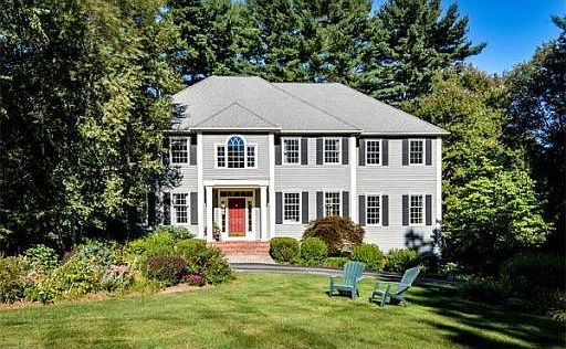 Gracious living on a cul-de-sac in a Sherborn Center location. With an inviting driveway that leads directly to classic brick portico, this home greets you with a grand two-story foyer leading to well-appointed living & dining rooms and a step-down large study. Living room has marble fireplace that opens through archway to dining room with tray ceiling. Expansive kitchen opens with French doors and to deck & light-filled step-down family room with fireplace & built-ins. Hardwood floors on both first and second floors, including in all bedrooms. Master suite with tray ceiling and large skylit bath & generous walk-in closet. Three more additional bedrooms on second floor, in addition to second floor laundry room. A finished walk-out lower level has areas for both media & exercise and has sliders to deck, brick patio & perennial gardens. Excellent commuter location, close to Wellesley & Natick shopping. Dover-Sherborn schools ranked #1 & 2 by Boston Magazine 2013