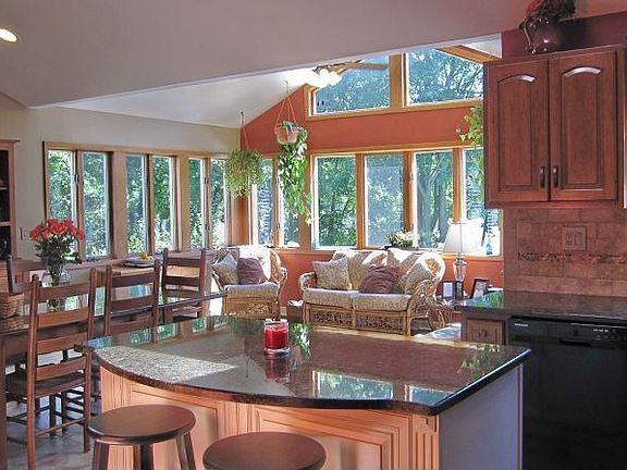 Fabulous Tri Level Split with great room addition and open floor plan to entertain. Boasts 3 bedrooms 2.1 baths, ground level walk-out family room to patio and heated pool, MBS w/ bath and sliders to deck. Features updated kitchen w/granite and center island; open to dining, living and great room. Great room is filled w/natural light from the numerous windows and skylight, and hardwood and tile floors throughout. The great room windows overlook the parklike property and in-ground pool w/quality landscaping and door to oversized trex deck. The 2nd floor offers MBS w/ en-suite bath and sliders to deck, 2 add'l bed rms and main bath. Ground level features a large family room w/surround sound included, French doors to patio, powder room and laundry.Additional features include a finished basement with office, and storage. Backyard oasis awaits you with pool and patio and level yard.
