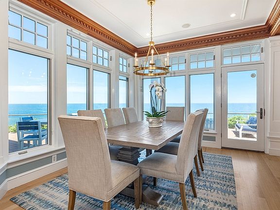 Experience unparalleled views of Scituate Harbor & beyond in this exceptional direct ocean front coastal craftsman home tucked on a quiet side street in the coveted third cliff. Superior craftsmanship & breathtaking vistas abound from the moment you step inside. Elevation & open floor plan with walls of windows make you feel like you are living on a ship! Designed for modern living, a newly renovated chefs kitchen w/large island flows into dining & living spaces and then out to expansive deck overlooking the cliff, Harbor, Sand Hill & Peggotty beaches from professionally landscaped gardens. Elevator easily transports you through 3 magnificent floors of luxurious living. Get work done in stunning custom library/office. End the day gazing at the water from private balcony off the primary suite. Enjoy family & friends in the amazing lower-level w/game room & home theatre w/surround sound. Third floor has ensuite and lofted gym. Sunsets, star-gazing and listening to the crashing waves.