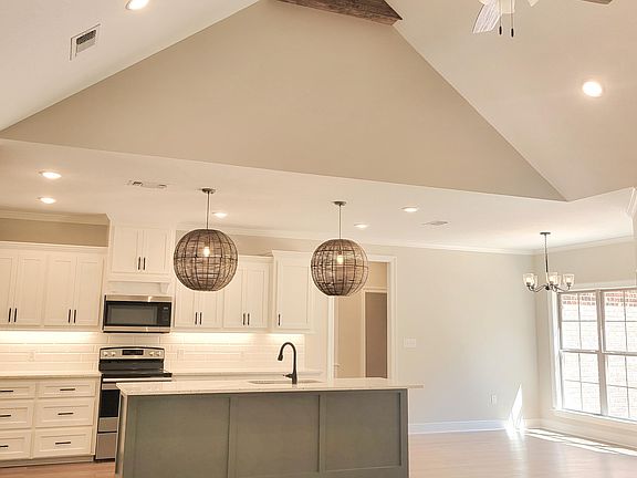 - Soaking Tub, Ceiling Fan(s), Step-Up Ceilings, High Ceilings, Cathedral Ceiling(s), Granite Counters, Kitchen Island