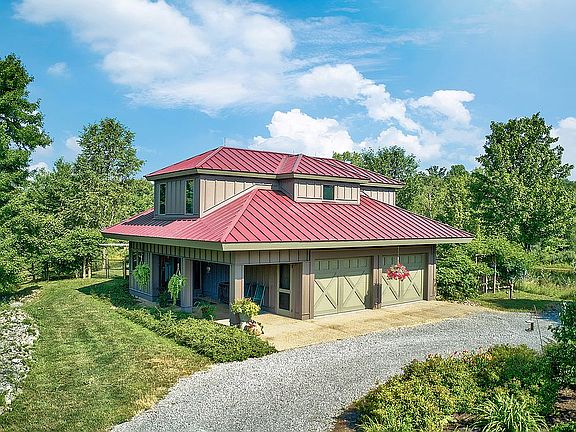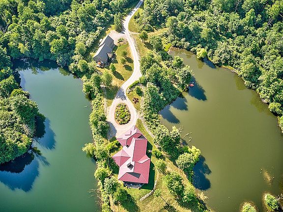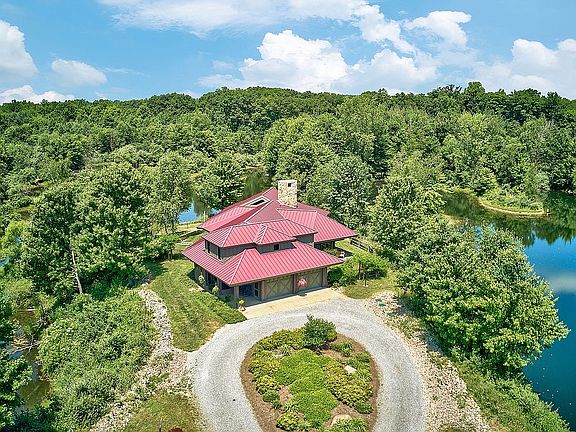 Beaver Ponds is a peaceful country estate situated 70 miles from Pittsburgh & includes a custom main home and separate guest house. Numerous hiking & ATV trails available and water for kayaking & fishing with a 17-acre adjacent parcel. Designed by Ligo Architects, the light-filled main house boasts a first floor master suite w/office, gourmet kitchen w/high-end appliances, and a covered porch with hardwood ceilings. Thoughtful finishing touches such as hickory wood floors, custom window casements and solid wood interior doors recall the natural environment. The open kitchen has a built-in wine fridge, custom wood cabinetry, a five burner electric range, warming drawers and a convection oven. The great room boasts soaring cathedral ceilings w/exposed beams, stone fireplace and walls of glass that connect to the outdoor living space.The master suite has a library, built-in desk with views, a walk-in closet, an oversized jetted tub, & a walk-in shower. Two secondary bedrooms are connected